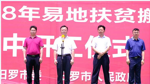 5月17日,汨罗市2018年易地扶贫搬迁项目集中开工仪式在大荆镇桂花村举行,标志着全市13个易地扶贫搬迁安置点项目建设迈出了实质性一步。市委书记喻文宣布开工,岳阳市联席办主任周和平,市领导李冯波、林治学、吴高明、李才红出席开工仪式。