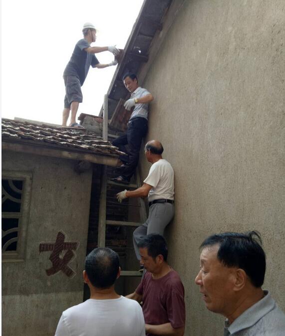 7月8日的雷雨,让氮肥新村一栋80年代的平房变成了“漏斗”。为了让住在破平房里的4户老人摆脱窘境,高泉社区迅速召集党员群众采购屋顶材料,并于7月9日早晨将屋顶修葺一新。