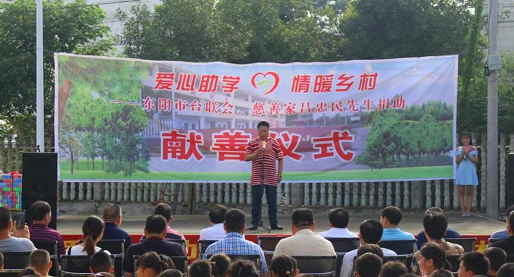 活动当天,吕忠民还出资5万元为希望小学修建塑胶跑道,并捐赠4百余套文具。2011年以来,吕忠民个人先后捐资150万元用于建设该小学,累计捐资50万元新添教学设施设备,10万元资助贫困学生。在他的“牵线搭桥”下,此次,东阳市台联会的爱心企业家出资1.8万帮扶该校18个贫困学生。
