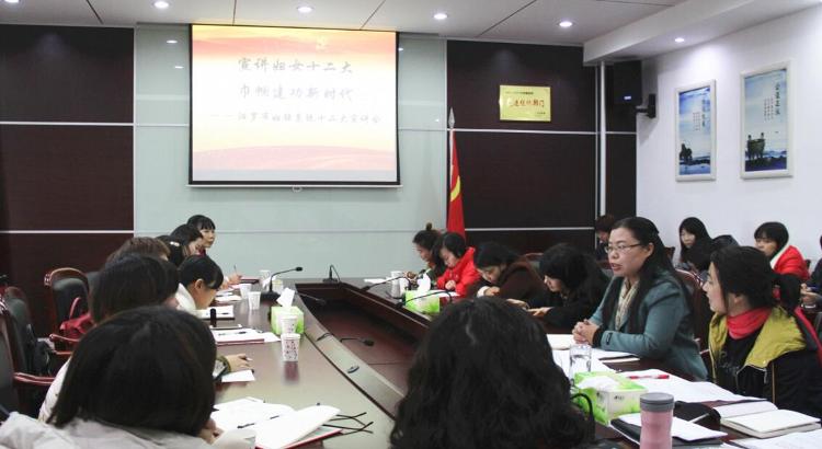 黄素萍从大会概况、湖南省代表团参会情况、习近平总书记重要指示精神、党中央致辞、大会报告和选举概况、章程修改情况等方面为大家做了宣讲,大家分享了参会感受。她说,非常荣幸能参加此次会议,通过大会感受到了党中央对女同胞的高度重视、亲切关怀和殷切期望。报告中一再强调了妇女要发挥不可替代的半边天作用,要发挥社会生活和家庭生活的两个独特作用;要注重家庭,注重家教,注重家风,大力推进家庭文明建设,用好的家风支持好的社会风气;要争做新时代女性,用实际行动展巾帼风采。