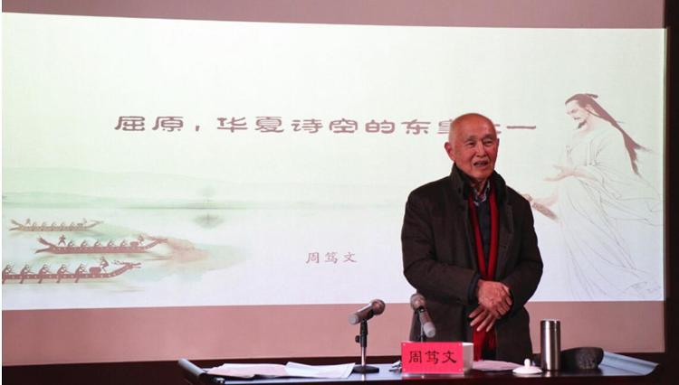 “离开家乡到现在近70年,汨罗的沧桑变化,出乎意料地让人喜悦与振奋。汨罗江这一方宝地流淌的不仅是蓝墨水,更是万古以来中华诗歌文化的精魂,屈原的精神与血脉仍然流淌在此。”始终关注家乡变化,支持家乡发展的周笃文先生深情回顾着对家乡的情意,歌赞着屈原精神。85岁的周笃文先生是汨罗弼时人,16岁离开家乡参军赴朝鲜作战,回国后上大学、走南闯北看世界,从事古典文学及文献学教学与研究50年。
