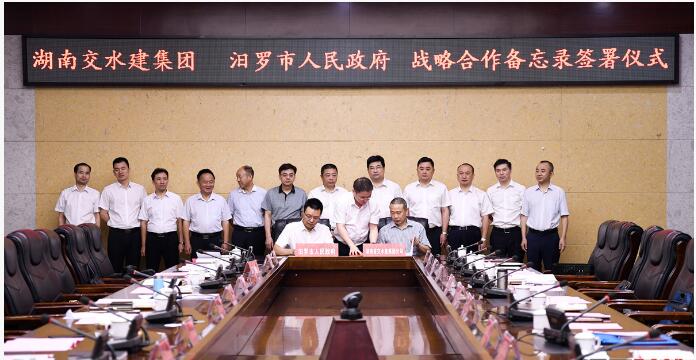 7月9日上午,汨罗市政府与湖南交水建集团战略合作备忘录签约仪式举行。湖南交水建集团党委书记、董事长方联民,汨罗市委副书记、市长朱平波出席签约仪式,市领导杨勇、彭国光、黄川伟参加。