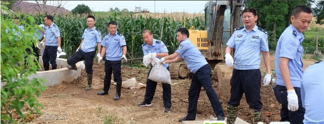 6号管涌险情消除,没有停留,李冯波又赶赴1号、4号管涌,组织民警、镇村干部装填砂石,压浸导浸,进一步做好险点处置工作。
