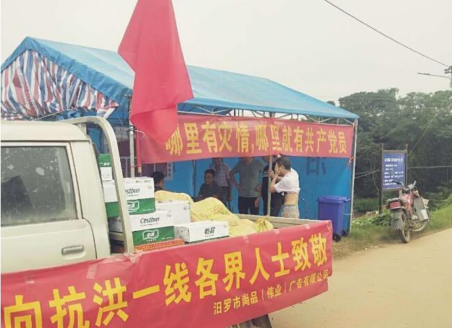 “感谢!感谢!”值守人员深受感动。原来,这是汨罗市尚品(伟业)广告有限公司组织开展的爱心慰问活动,近3天时间里该公司动用了3辆车派送爱心物资,累计慰问防汛值守点40多个,捐赠物资累计价值两万余元。