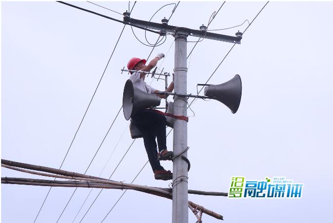 “我们今天赶过来维修,就是为了让群众能及时的了解到各种汛情信息,确保生命安全。”技术维修人员蔡齐坤忙得满头大汗,经过近一个小时的排查维修后,“村村响”发出了测试声音。