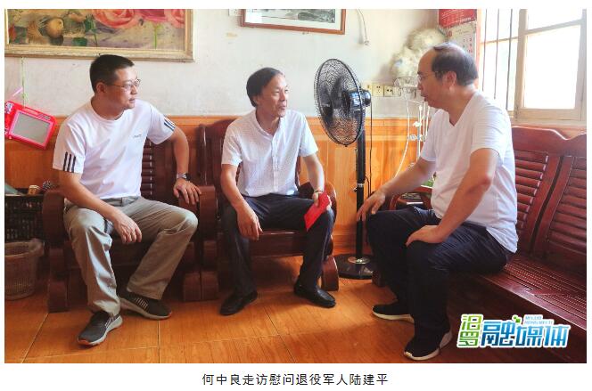 何中良一行先后来到退役军人陈建平、黄军良和现役军人陆寒冻家中,详细了解他们的生活情况,对他们为国家和人民所作的贡献表示感谢。