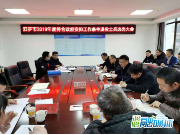 汨罗融媒体讯(通讯员 张浩)12月8日,汨罗市2019年度符合政府安排工作条件的退役士兵选岗大会在市退役军人事务局召开。会议通报了退役士兵阳光安置资格审查、量化评分、排名公示情况及选岗程序。24名退役士兵依次有序、公开公正选岗,市政府办、市委编办、退役军人事务局、人社局、财政局全程参与,市纪委派驻纪检组全程监督并宣读选岗程序依法依规,结果合法有效。