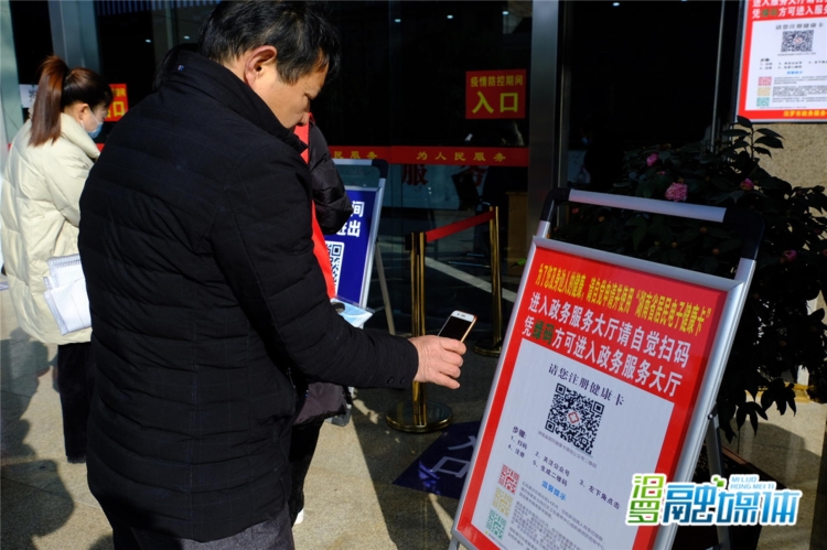 汨罗融媒体讯(记者 任可)1月13日,记者在汨罗市政务服务中心入口处看到,写有“规范佩戴口罩”等信息的提示牌放在醒目位置,一旁还配有用于扫描出示湖南省居民健康卡的二维码,身穿红马甲的志愿者正在一旁提醒引导群众。据了解,汨罗市政务服务中心近日已全面激活常态化疫情防控下战时机制,市民进入中心办事需遵守疫情防控相关流程。
