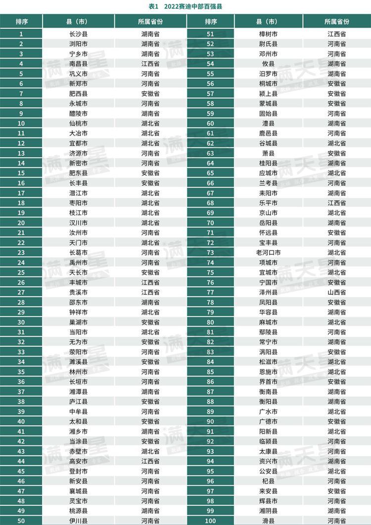 据介绍,赛迪顾问县域经济研究中心从经济实力、增长潜力、富裕程度、绿色水平四个维度选取8个二级指标,19个三级指标,对中部六省475个县级行政区县域经济综合竞争力进行综估分析。该中心研究小组通过采用一对一线上填报、公开数据抓取、政府公报整理等多途径收集数据并互相印证,最终建立了中部县域经济高质量发展评价数据库,并依据专家组建议,设立了"GDP≥300亿元、一般公共预算收入≥10亿元"的中部百强评价双门槛,通过数次讨论和评价会议最终评选出"2022赛迪中部百强县"。
