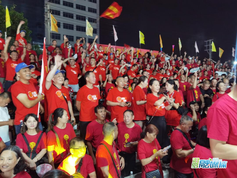 当晚,在西坑村坚公文化广场篮球场,郴州汨罗两地牵手,从汨罗千里迢迢赶来的200多名球迷,与郴州约400名球迷共同组成啦啦队的“红色海洋”,近600人共同呐喊助威,几乎将晋江西坑变成了汨罗川山队的主场。