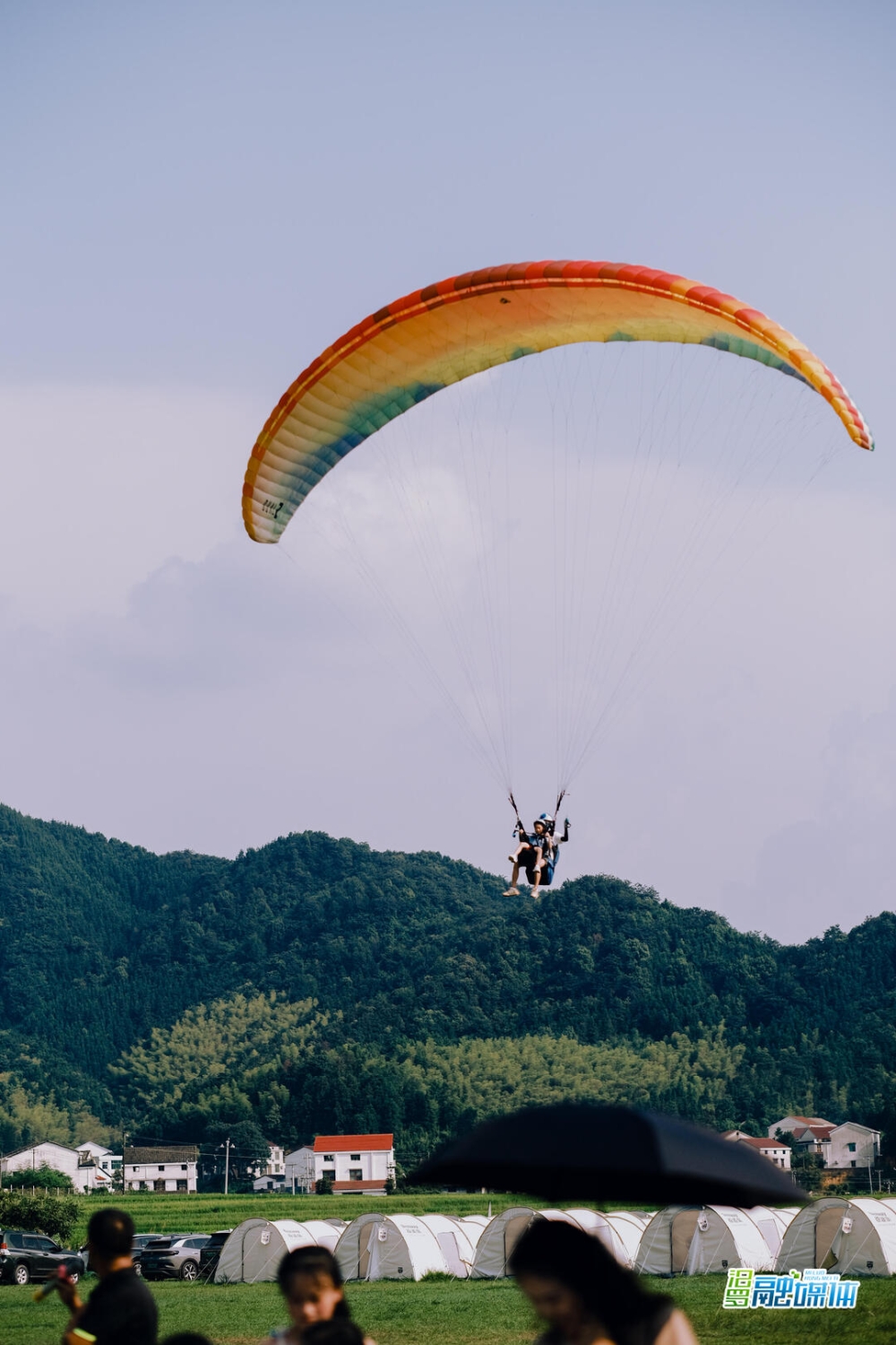 除了接受历史文化的沐浴,来到长乐古镇喝甜酒、体验滑翔也是不少游客的选择。这几日,智峰山滑翔基地人头攒动,游人在滑翔教练的指导下,穿戴好护具,“全副武装”腾空而起。远山近水绿野、小桥流水人家……在一整片深蓝中“自由飞翔”,一切都尽收眼底。