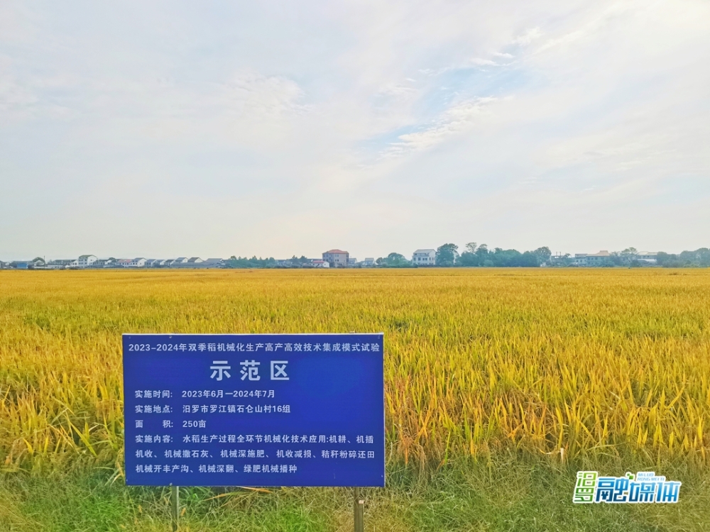 据了解,今年起,省农机事务中心启动双季稻机械化生产高产高效技术集成模式试验示范项目,2023-2024年在我省双季稻主产区,农机化技术推广基础比较好、技术力量比较强的地方,建设2个双季稻机械化生产高产高效技术集成模式试验示范片区。汨罗市罗江镇石仑山村双季稻机械化生产高产高效技术集成模式试验示范区是其中之一。