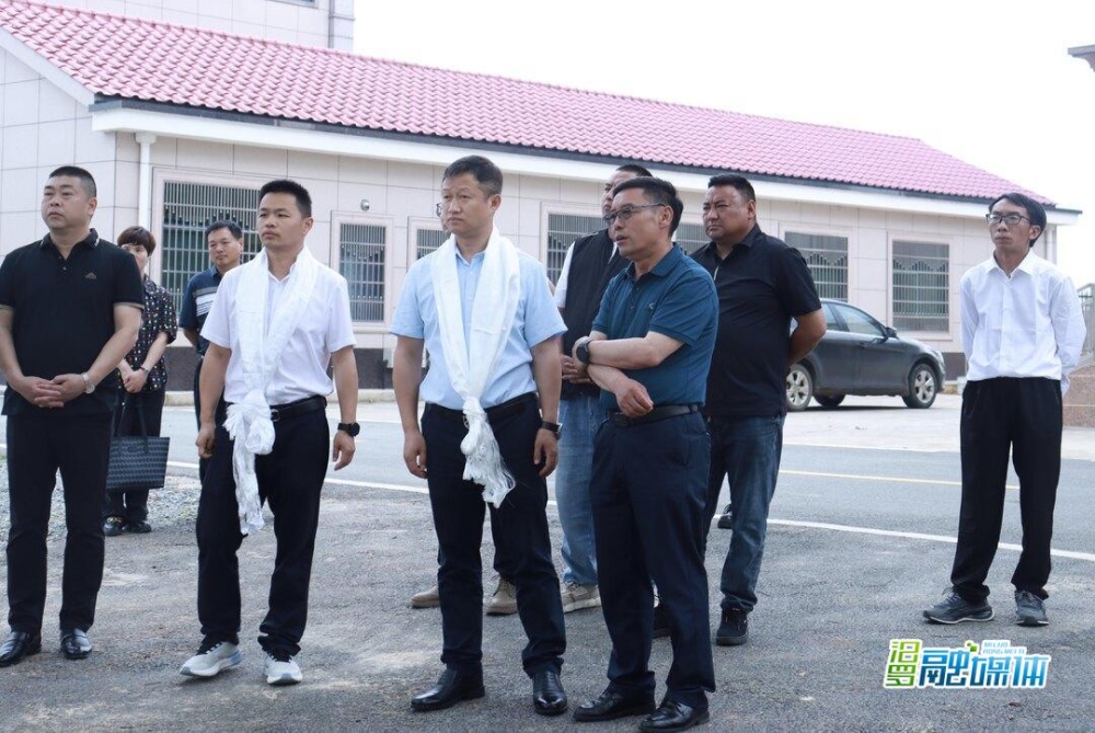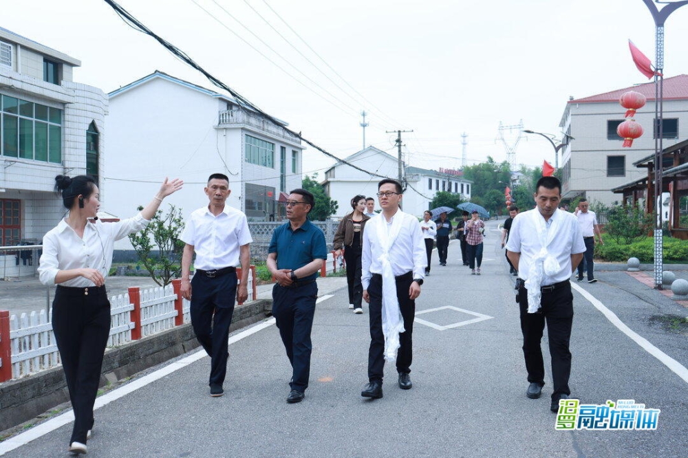 桑日县委副书记、县长索朗巴珠(前排右一),汨罗市委副书记、市长林恒求(前排右二)在罗江镇罗江村梁家坪屋场考察