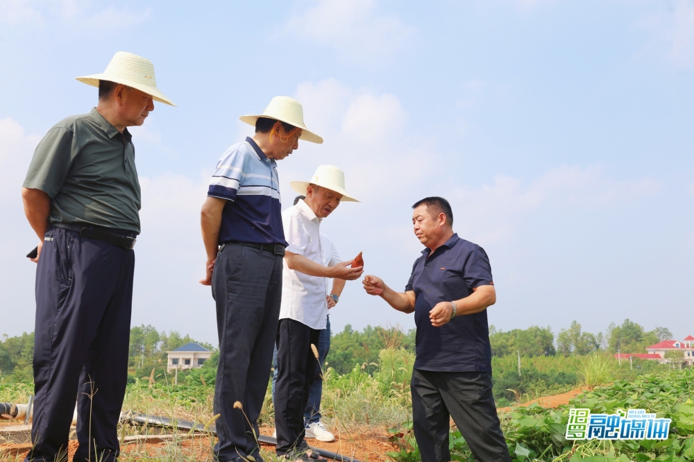 岳阳市人大常委会原副主任、市老科协会长包忠清(左二)考察红薯种植基地