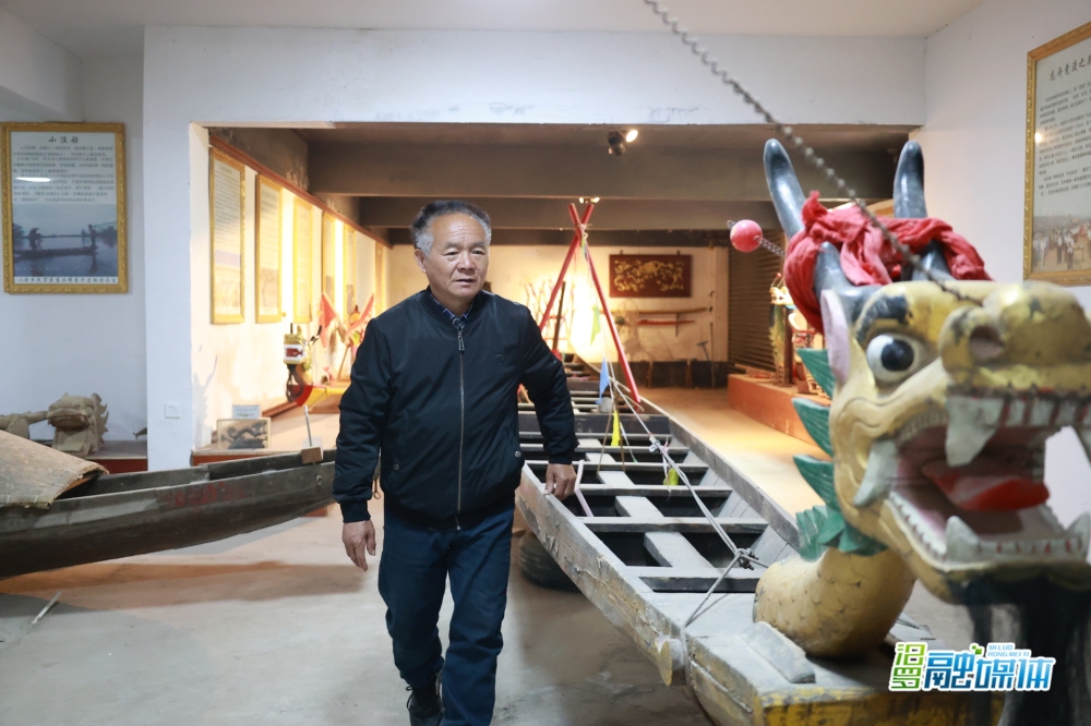 省级非遗代表性传承人许桂生介绍自己建设的龙舟陈列馆