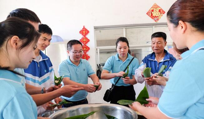 5月26日上午,汨罗港华燃气有限公司的22名员工带着糯米、粽叶、奶粉等物资,来到泰康护理院举行“万粽同心为公益”活动,现场为老人们包粽子、发放奶粉,给他们带去节日的快乐。先把粽叶的三分之一处折过来,做好后把糯米灌进去按紧……”在护理院食堂,港华燃气一名包粽子高手正在教年轻员工包粽子。一旁的老人们,有的自己包起了粽子,有的坐在旁边晓有兴致地观看着。 “老人家,这个奶粉您拿着补充一点营养。”趁着老人们都在,港华燃气总经理熊兴国为老人们一一分发了中老年奶粉,对于不能下床活动的老人,他带领员工把慰问品送去老人的房间。