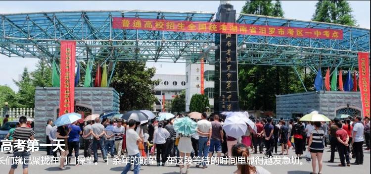 “楚地钟灵秀,点洞庭波,蘸汨江水,看我挥毫泼墨。”6月7日,高考第一天,汨罗有3577名考生赴考,其中文科考生1295人(艺体类考生347人);理科考生1919(艺体类考生118人);职高对口类363人。全市共设市一中、二中,罗城学校三个考点,126个自然考室。清晨七时许,市一中考场门口就已聚集了大批考生家长,离9点开考还有一个多小时,许多家长就已早早将子女们送进了考场内,稳稳的守在他们的人生拐角处。这位家长为了孩子的第一场考试,还特意买了一件旗袍穿上,她说,“这寓意着旗开得胜,很简单的一件事。”但只有为人父母者知道,这十多年的默默奉献怎可言表。家在屈原区的曹先生和爱人一起租住在一中附近陪读已有两年时间,他的爱人也因此放弃了工作,一家人为了女儿的未来可谓煞费苦心。今早6点多钟他就和爱人起床,为女儿准备了可口的早餐,他说,这么重要的时候,还是吃自己做的东西放心些。