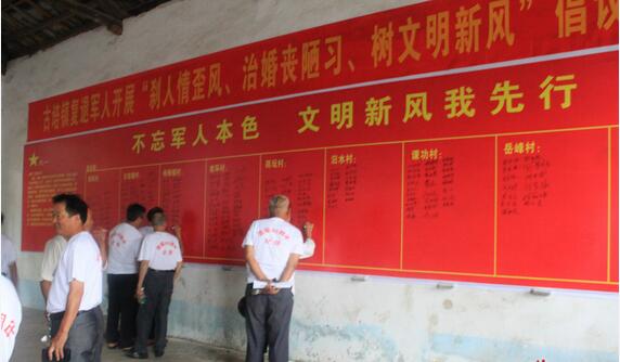 8月1日,古培镇400余位复退军人齐聚一堂共庆“八一”。会上,复退军人观看古培镇政府特别制作的《庆祝建军90周年专题宣传片》。随后,该镇负责人宣讲古培镇今后发展思路,号召复退军人在地方建设中继续发扬军人本色,积极争当“实力、文化、美丽、平安”古培建设的排头兵、主力军。会后,复退军人纷纷在“不忘军人本色,文明新风我先行”巨型海报墙签名,承诺争做移风易俗带头人,为古培文明新风添砖加瓦。(彭晓 徐佩)