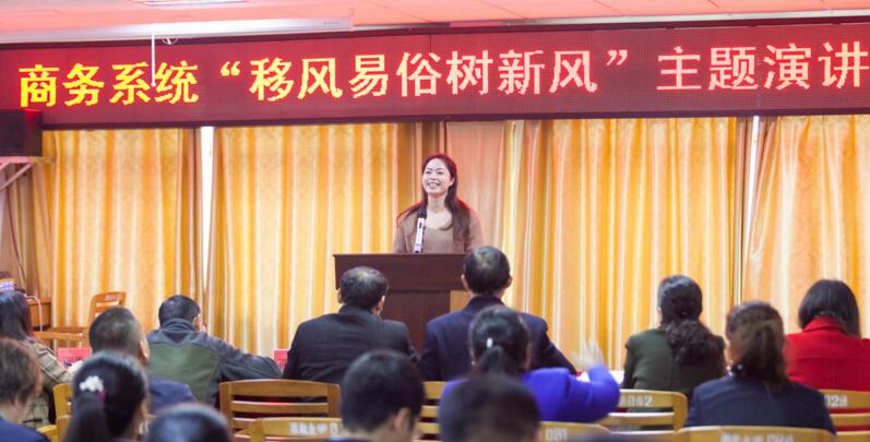 移风易俗,让汨江大地劲吹文明新风。11月17日,汨罗市商务系统“移风易俗树新风”主题演讲比赛举行,13名优秀青年代表登台演说,讲述身边移风易俗、文明新风的感人故事。