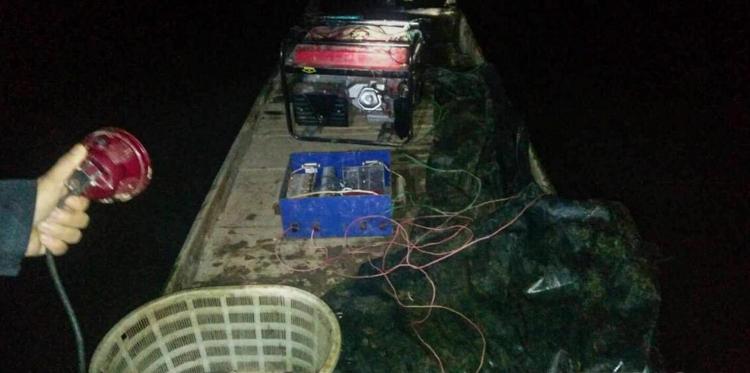 12月17日晚,汨罗渔政执法队进行巡查时,发现一起电打鱼行为,当即没收电鱼器具,并对违法人员进行宣传教育。