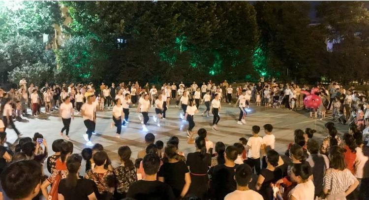 抬脚,踢腿,挥臂,转身……6月16日晚上7点半,记者在归义广场看到了一场鬼步舞“快闪”,来自“乐美培训”的舞蹈表演者跟随着欢快的音乐节拍快速起舞,整齐划一的舞步引来围观市民的阵阵惊叹。十几分钟后,音乐声停住,表演结束。这群“快闪”族又赶赴大操坪、屈子生态湿地公园,以同样的形式进行表演。动感、快节奏的舞步,一下子就吸引了许多市民的眼球,围观的市民直呼看得好过瘾。
