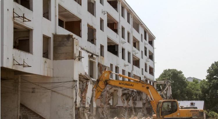 6月17日,位于人民路南侧、友谊河西侧的泰和楼全部腾退清空,归义镇、公安、规划、交警、公证处等组成的110余人联合执法队开始拆除建筑主体。据了解,该楼已有11年历史,总建筑面积4500平方米。拆除后,可为腾地1000余平方米,该地块将作为城市公园建设用地。