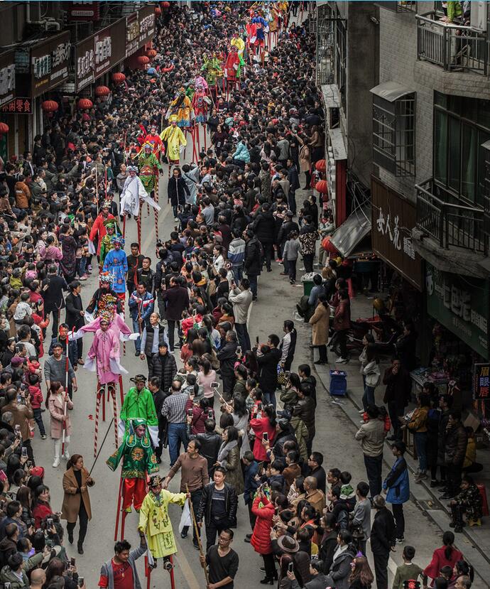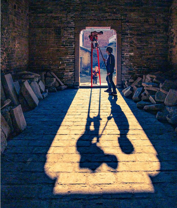 古宅里练高跷(WALKING ON STILTS IN THE STREET)(李红辉/摄)