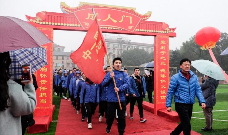 十八个春秋,十八个年轮,生命的力量在经历充足的积攒与酝酿之后,迎来了最美的青春礼赞。在春雨洗礼下,全体高三学生踏上红毯,依次从“成人门”“ 感恩门”“成功门”经过,并许下斗志昂扬的青春誓言。