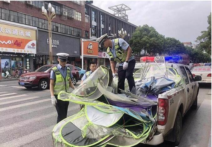 经统计,当天行动一共收缴伞具200余把,现场纠违300起,文明劝导230人次,查纠其他交通违法行为42起。