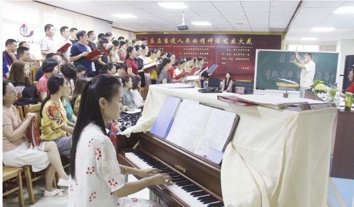7月13日,岳阳市音乐家协会副主席、合唱协会会长黄皓华一行4人来到汨罗,与汨罗音协合唱艺术团的近100名团员进行了深入交流,并以《业余合唱团的组建与发展》为题对合唱团成员进行现场授课。《游子情思》《送别》《在那银色的月光下》……随着悠扬的曲调、优美的旋律响起,团员们一展歌喉,铿锵有力又不失细腻深情的演唱赢得了现场专家的阵阵掌声。“发声位置要统一,呼吸节奏要把握好,各声部之间要融合。”在仔细聆听歌曲后,黄皓华还从呼吸、音域、音色、力度、节奏、表现力等方面,对合唱团团员进行技术指导。