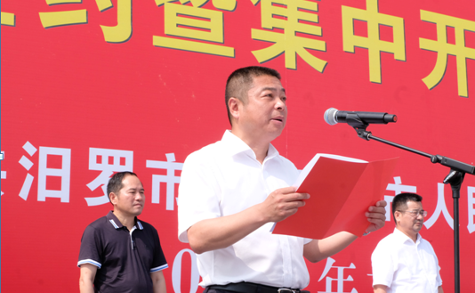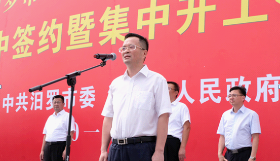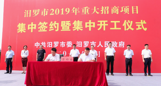 6月27日上午,汨罗市2019年重大招商项目集中签约暨集中开工仪式在循环经济产业园区举行。汨罗市本次迎来8个重大项目集中签约、8个重大项目集中开工,这些项目分别落地在循环经济产业园、长沙经开区汨罗产业园,标志着汨罗坚持工业强市、进军“千亿园区”又迈出了坚实的一步。岳阳市政协主席徐新楚宣布重大项目集中开工,汨罗市委书记喻文出席并讲话,市委副书记、市长朱平波主持仪式,市领导闵秀明、彭千红、林治学、陈若杨、宋辉等参加。