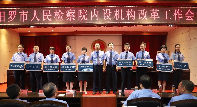 7月2日,汨罗市人民检察院召开内设机构改革工作会议,市检察院党组书记、检察长赵承卓为新组建的内设机构负责人授牌、授印,所有新设机构全部完成挂牌并正式运行。