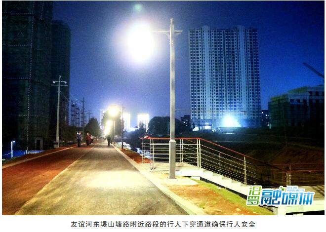 "目前市政公司负责的友谊河东堤荣家路至人民路段、山塘路至汨罗江大道段已实现通行,风雨廊、地下通道等单体建筑已完工,亮化工程完成80%。"市政公司相关负责人介绍。