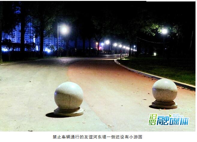 据了解,自友谊河防洪治污综合治理工程启动以来,我市投入了6000多万元资金,对全长3.6公里的友谊河东堤进行改造。目前,全线道路"白改黑",并区分自行车道和步行道;道路两旁铺设草皮、移栽花木,植被覆盖面积达到2000多平方;设立240盏庭院灯和草坪灯,为夜间行人照明。