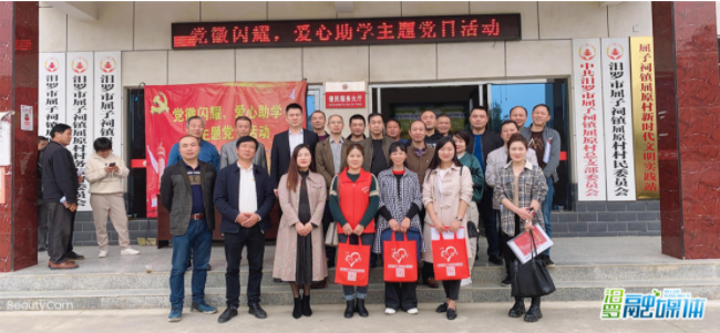 汨罗融媒体讯(记者 翁正娇)10月30日上午,市委接待服务中心第一党支部携手汨罗江大酒店、“爱行天下”扶贫助学志愿者协会在屈子祠镇屈原村开展主题党日活动。活动以“党徽闪耀,爱心助学”为主题,在该村开展扶贫助学。