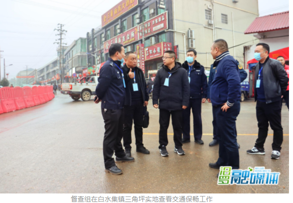 当天上午,督查组来到白水镇政府和集镇三角坪,实地详细检查春运各项工作落实情况。集镇上张灯结彩,新年气氛浓厚,中心地带畅行无阻。据了解,2月4日是白水集镇实施春运期间交通疏导的首日。当天开始,来自交警白水中队、白水派出所、交通执法综合大队的执法人员、镇村干部及社区志愿者组成百余人队伍,分路口、分时段开展交通疏导执勤工作,全力以赴保障春运期间集镇平安畅通。