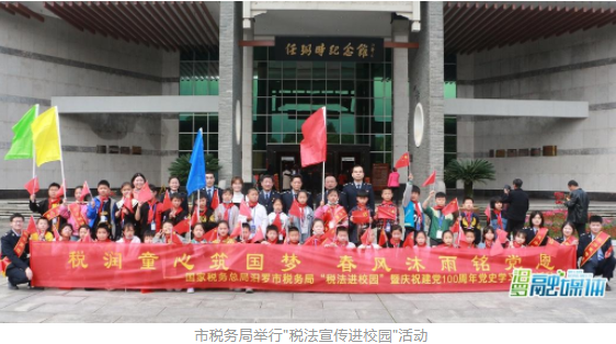 当天,国家税务总局汨罗市税务局结合党史学习教育,开展以"税润童心筑国梦,春风沐雨铭党恩"为主题的税法宣传活动,通过学税法、刻税字、答党史等多种形式,引导教育孩子们学习党史和税法知识,感恩幸福生活。