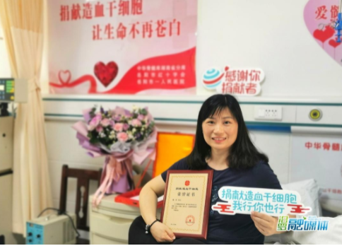 谢宁是汨罗农村商业银行的一名职工,今年5月13日,她成功捐献222毫升造血干细胞混悬液,为山东的一名血液病患者重新点燃生命的希望。