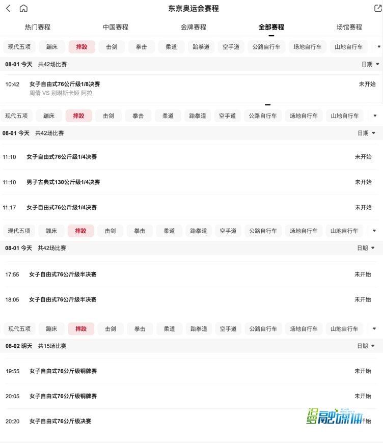 记者从汨罗市教体局获悉,周倩首场比赛是8月1日上午10点42分(以下均为北京时间)的76公斤级女子摔跤比赛1/8决赛。