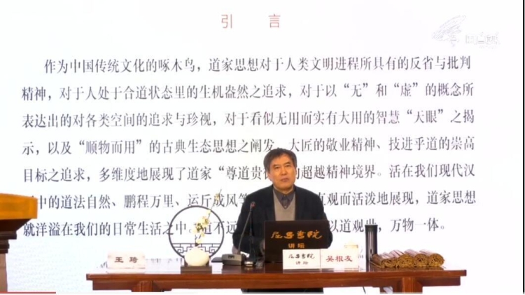 “以地为善,日常生活以谦虚的大地作为你的目标”“心善渊,人生要清明透彻,没有过多欲望”“当我们对一件事乐此不疲的时候这就是人生最大的幸福”……讲座中,吴根友教授围绕道家思想及其现代意义进行深入阐述,选取了《庄子·逍遥游》中“五石之瓠”“宋人有善为不龟手之药者”“大本臃肿而不中绳墨”的故事,阐发了庄子的“无用之用乃为大用”的哲学智慧。