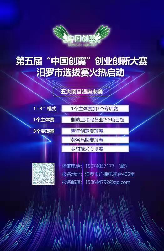 汨罗融媒体讯(记者 郑甘)近日,记者由汨罗市人力资源和社会保障局获悉,第五届“中国创翼”创新创业大赛汨罗市选拔赛正式启动报名。本次大赛将以创新引领创业、创业带动就业、推进乡村振兴为重点评价指标,按照“1+3”模式开展,即1个主体赛加3个专项赛。