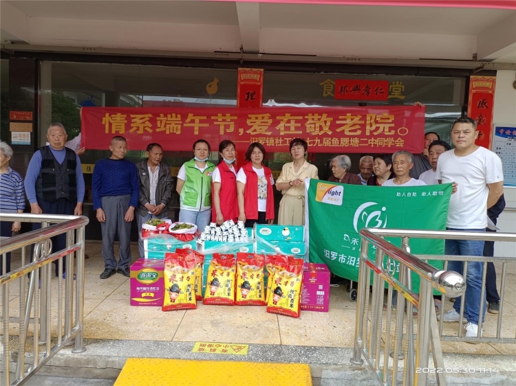 汨罗融媒体讯(通讯员 杨伊)端午临近,5月30日,汨罗镇民政办、社工站携手七九届鱼腮塘二中同学会带上米油、粽子等爱心物品,带着浓浓的节日情意,走进汨罗镇敬老院,为敬老院的孤寡老人送去真情祝福和暖心问候。