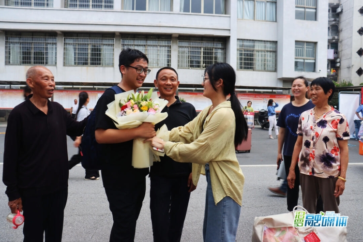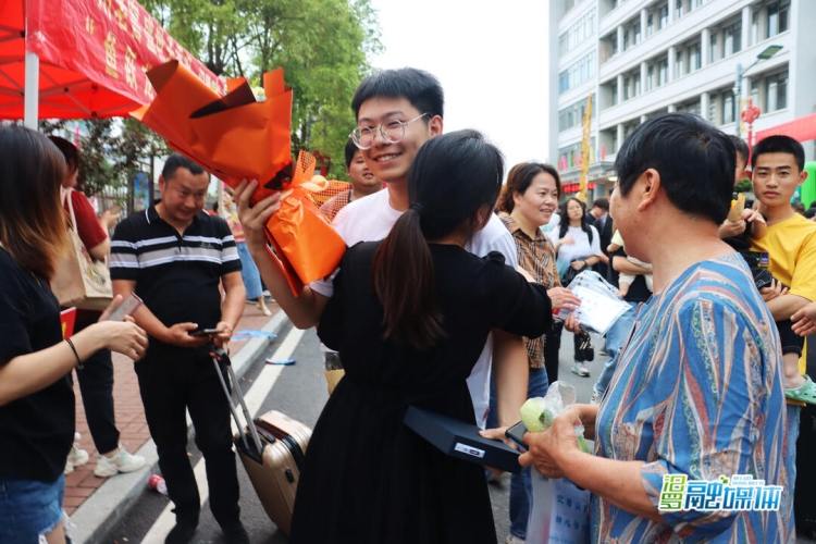 “儿子高中三年十分辛苦,我就想买束花嘉奖他。”市民王女士将手中的花送到冲出考场的儿子的手中,还给了一个大大的拥抱。她说,高考只是一个阶段性的检测,不管考得如何,顺利完成就很棒了。像王女士一样在考点等待已久的父母为考生纷纷送出手中的花束,庆祝考生高考凯旋。
