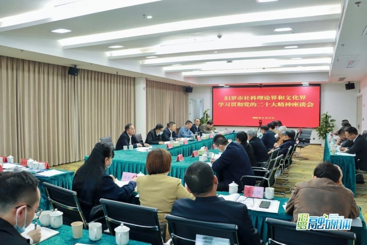 汨罗融媒体讯(记者 夏凡 姚望)11月17日下午,汨罗市社科理论界和文化界学习贯彻党的二十大精神座谈会举行。市委书记朱平波,市领导艾志军、易万、刘勇,相关部门单位负责人,17位社科理论界和文化界代表,彭千红、舒文治、甘征文、黄泽南、刘石林5位特约嘉宾参加。