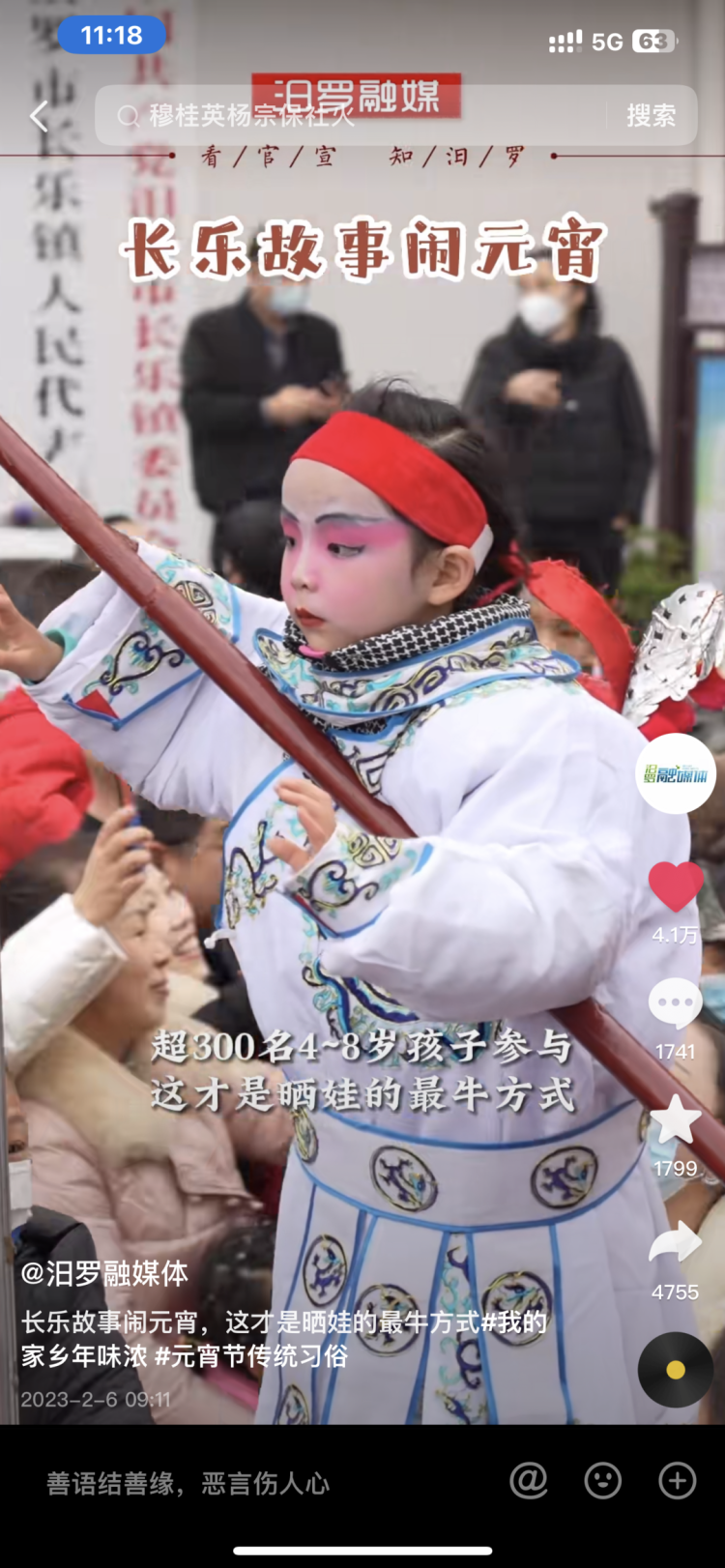 汨罗融媒体抖音号《长乐故事闹元宵,这才是晒娃的最牛方式》截图