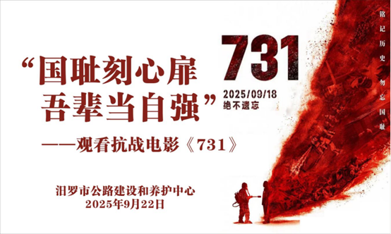 为深化爱国主义教育,引导干部职工铭记历史、缅怀先烈、珍爱和平,9月22日,汨罗市公路建设和养护中心组织全体干部职工集体观看历史题材电影《731》,以光影为媒,重温那段不能忘却的苦难的民族记忆。