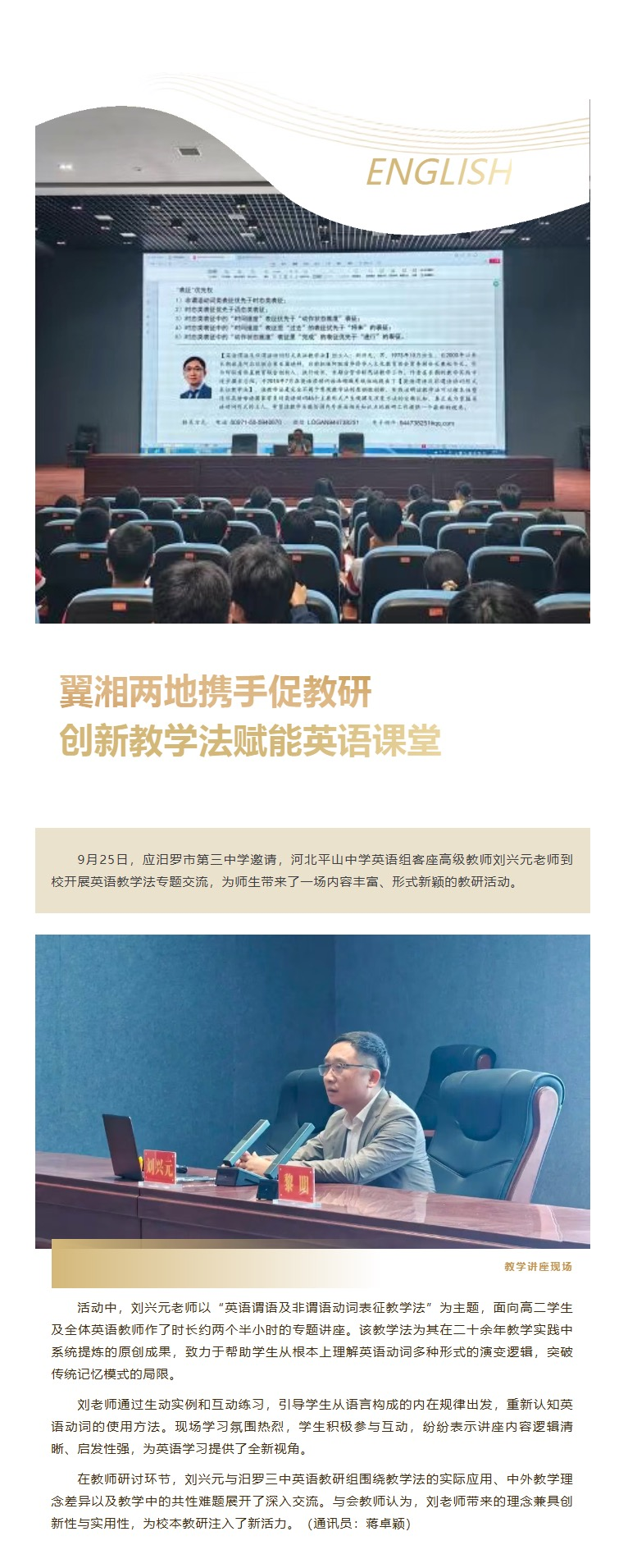 市三中:冀湘两地携手促教研 创新教学法赋能英语课堂