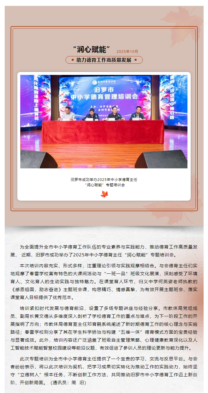 汨罗市成功举办2025年中小学德育主任 “润心赋能”专题培训会