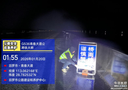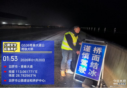 人机联动,高效畅通。1月20日,汨罗市公路建养中心领导干部带队奔赴国省干线、桥梁等关键路段,启动“机械为主、人工为辅”作业模式。除雪车、撒布机梯队作业,循环推进清除积雪;针对易结冰区域,养护人员“反复清扫、多次撒盐”,确保隐患清零。