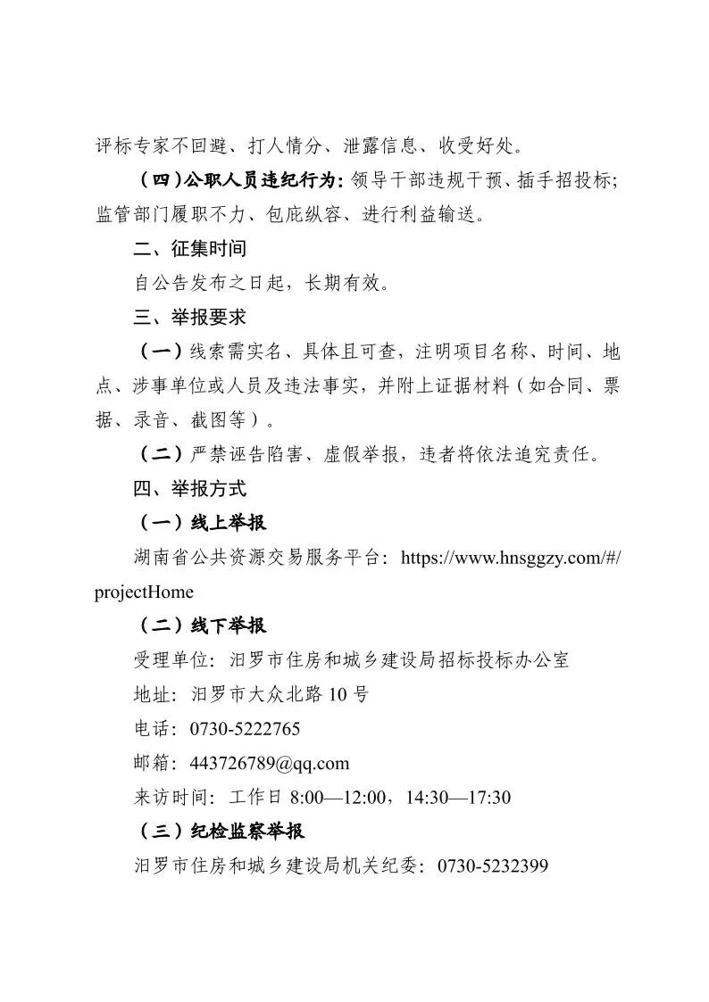 关于公开征集建筑领域招投标突出问题线索的公告